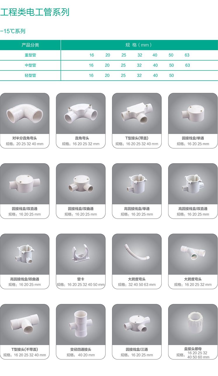 無增塑剛性阻燃PVC套管及管件系列產(chǎn)品,按JG/3050-1998標(biāo)準(zhǔn)設(shè)計(jì)和生產(chǎn),其主要性能指標(biāo)均達(dá)到標(biāo)準(zhǔn)要求。產(chǎn)品適用于1000V以下線路的電氣安裝中用來保護(hù)導(dǎo)線或電纜。