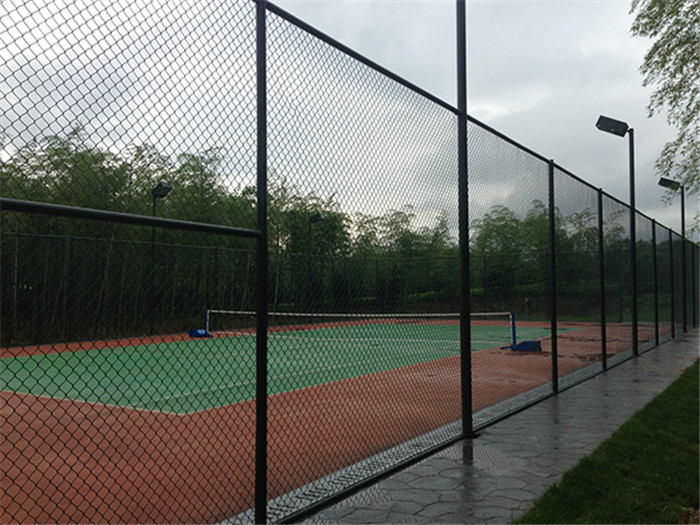 結(jié)構(gòu):用冷拔低碳鋼絲焊接成網(wǎng)筒狀卷邊與網(wǎng)面一體,用連接附件與鋼管立柱固定。