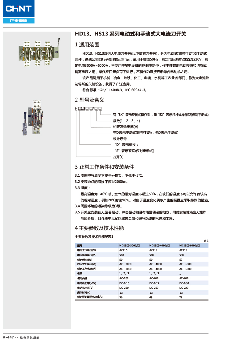 正泰電氣 HD13、HS13 系列電動式和手動式大電流刀開關