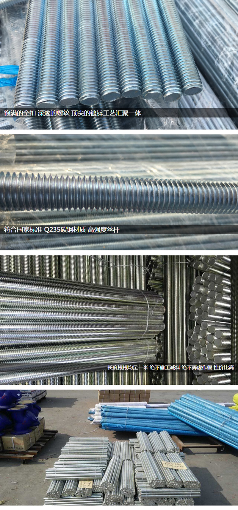 4.8級鍍鋅全螺紋絲桿 8.8級高強度絲桿/牙條/全牙螺桿/通絲1米長M4-M30系列 【白鋅】M8*1米