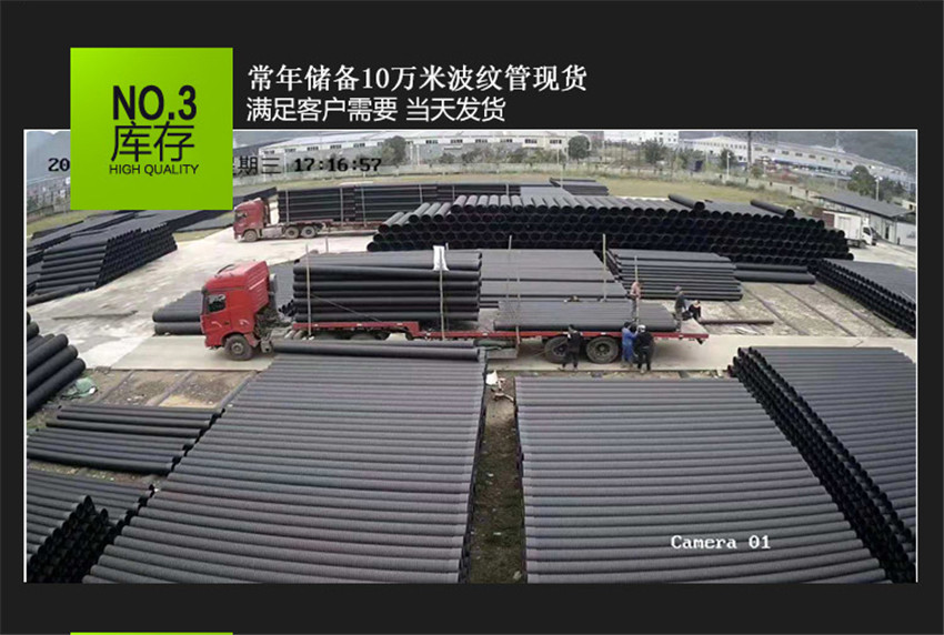 高密度聚乙烯(HDPE)雙壁波紋管是以高密度聚乙烯(HDPE)為主要原料加入必要的添加劑,經(jīng)擠出成型方式加工而成的具有波紋結(jié)構(gòu)的管材,內(nèi)壁平整光滑,外壁波紋,內(nèi)外壁是中空且緊密熔接的環(huán)狀結(jié)構(gòu)。具有耐腐蝕,使用壽命長(zhǎng);內(nèi)壁光滑,流動(dòng)摩擦阻力小;一體化成型,性能均一等優(yōu)點(diǎn)。