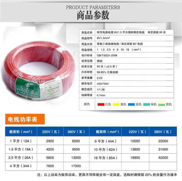 綠寶電線國(guó)標(biāo)2.5/4/6/10/16純銅BV單芯電線