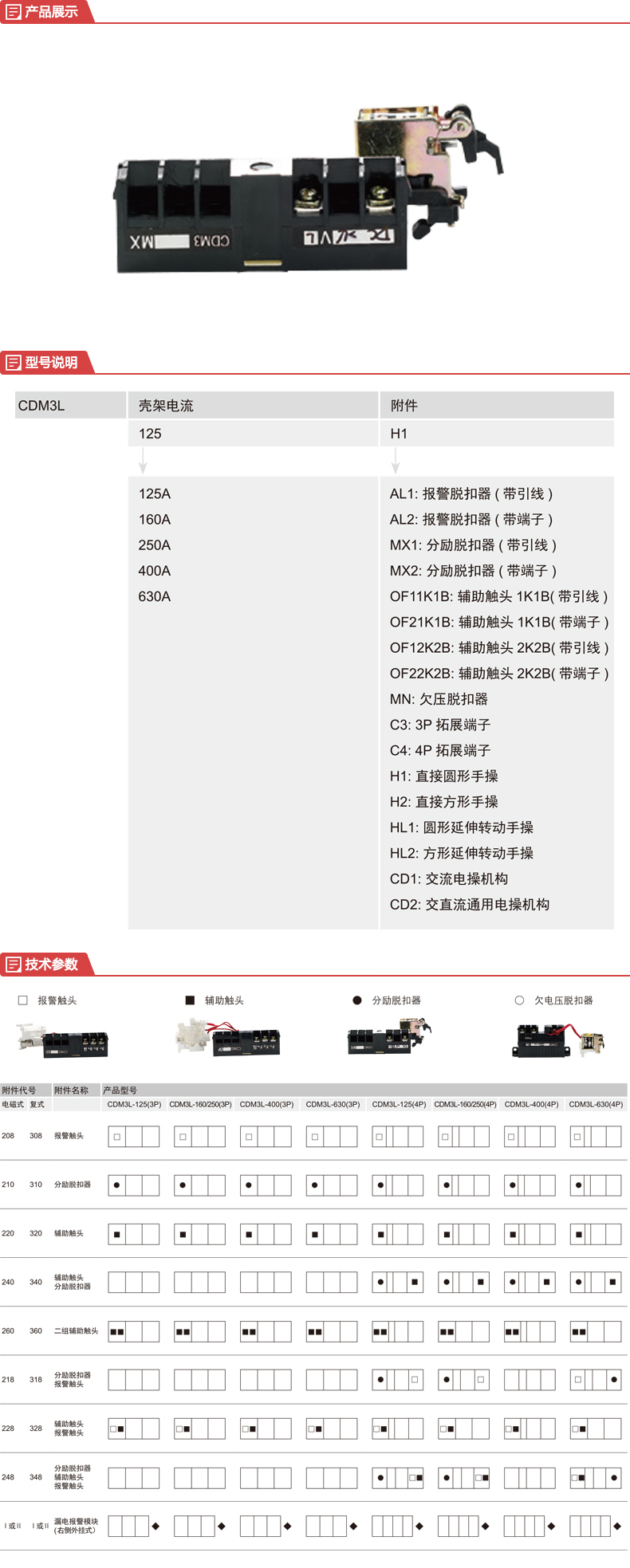 漏電塑殼斷路器附件;分勵左(引線)CDM3L-160/250 AC400V