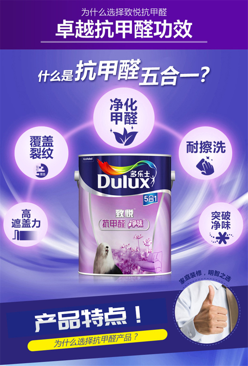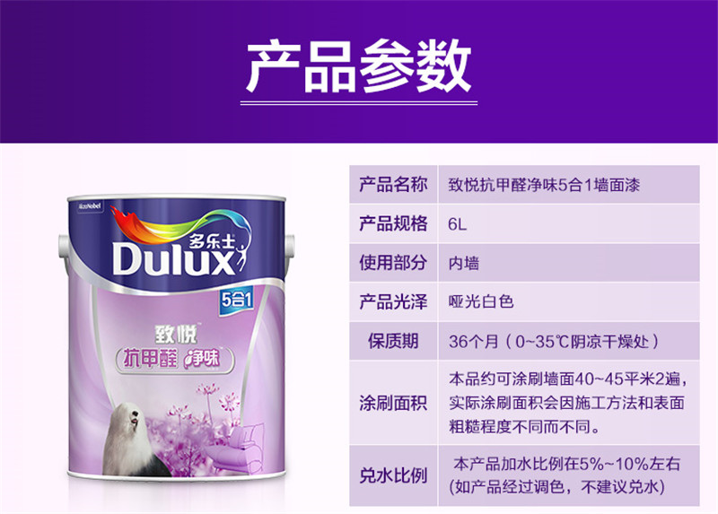 多樂士(Dulux)致悅抗甲醛凈味5合1內(nèi)墻乳膠漆 墻面漆 油漆涂料A744