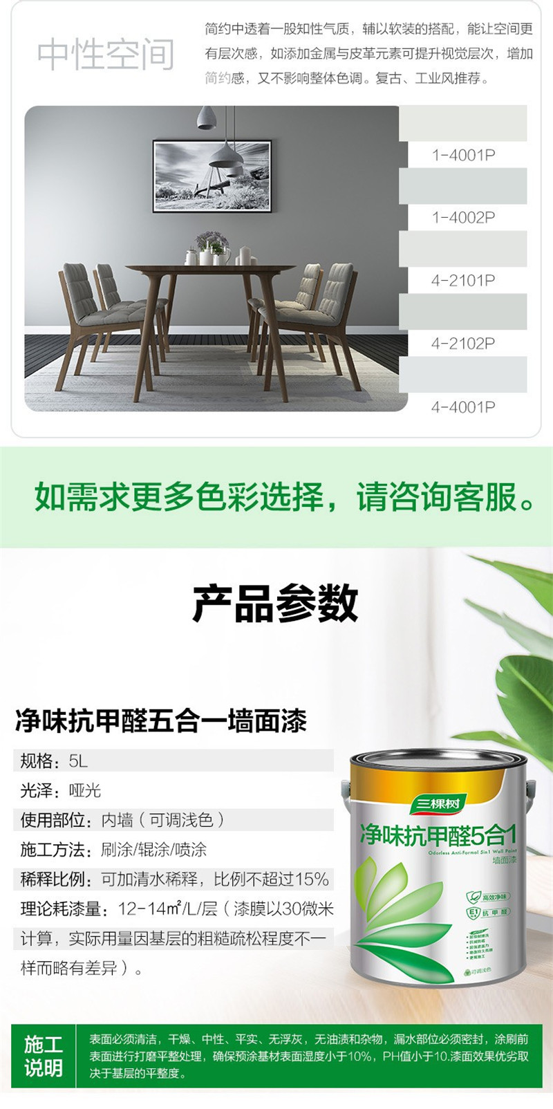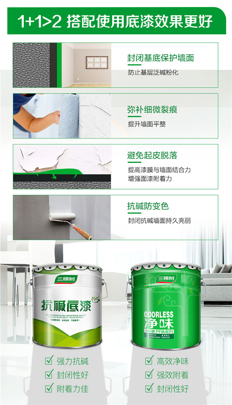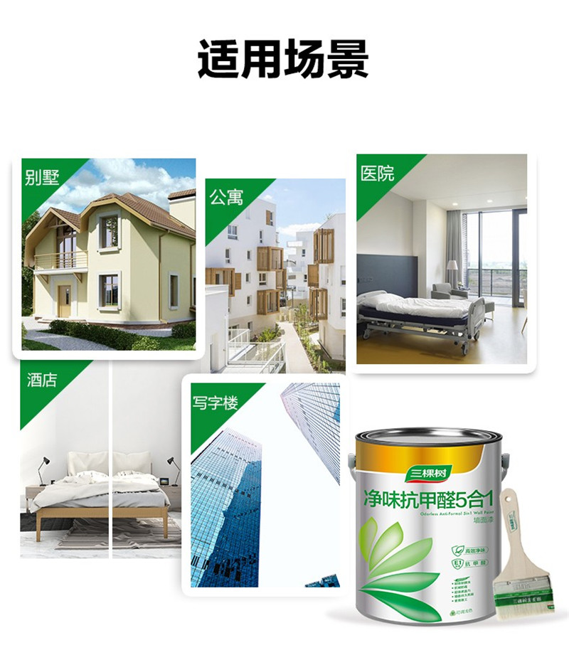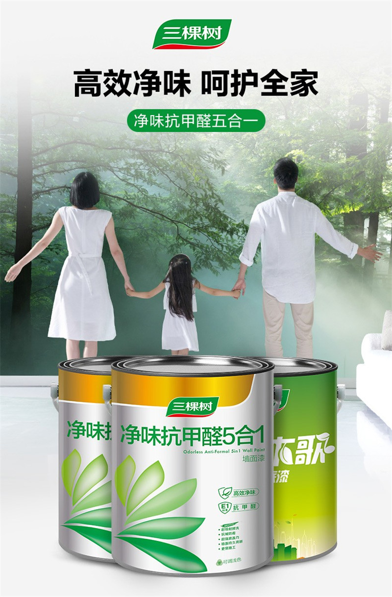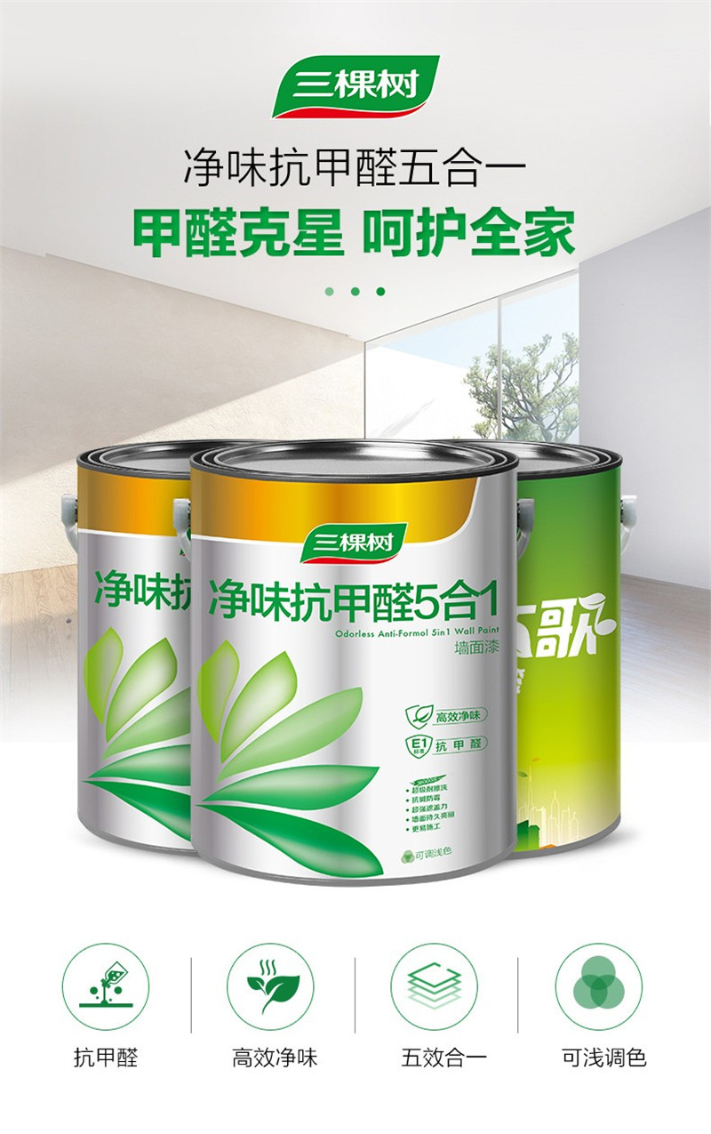 三棵樹漆油漆涂料內(nèi)墻乳膠漆墻面漆 凈味抗甲醛五合一