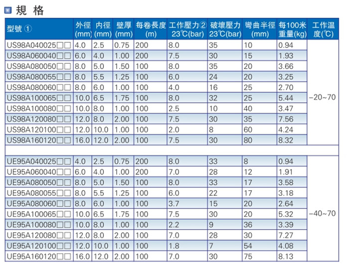 亞德客(AIRTAC)氣動(dòng)元件氣管PU管US98A系列