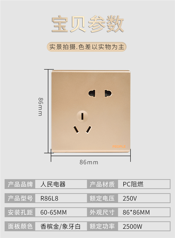 人民開關(guān)插座典雅香檳金白色單雙控開關(guān)