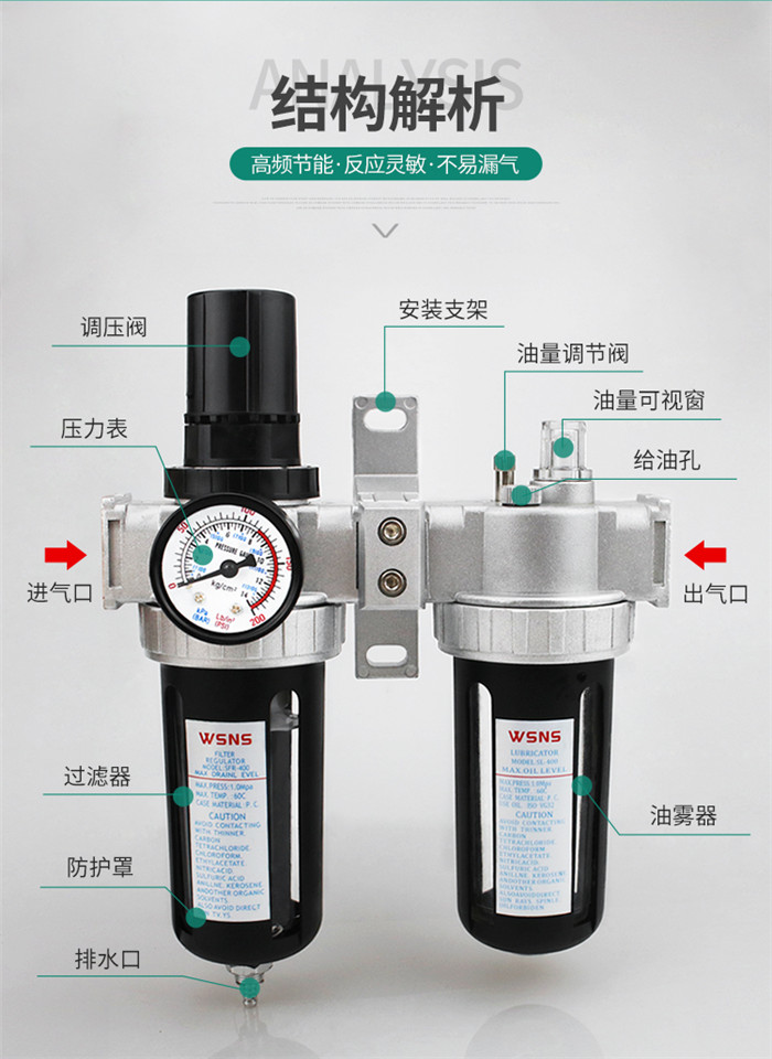 山耐斯油水分離器空壓機(jī)氣泵吹塵用氣源處理器過濾器油霧器二聯(lián)件