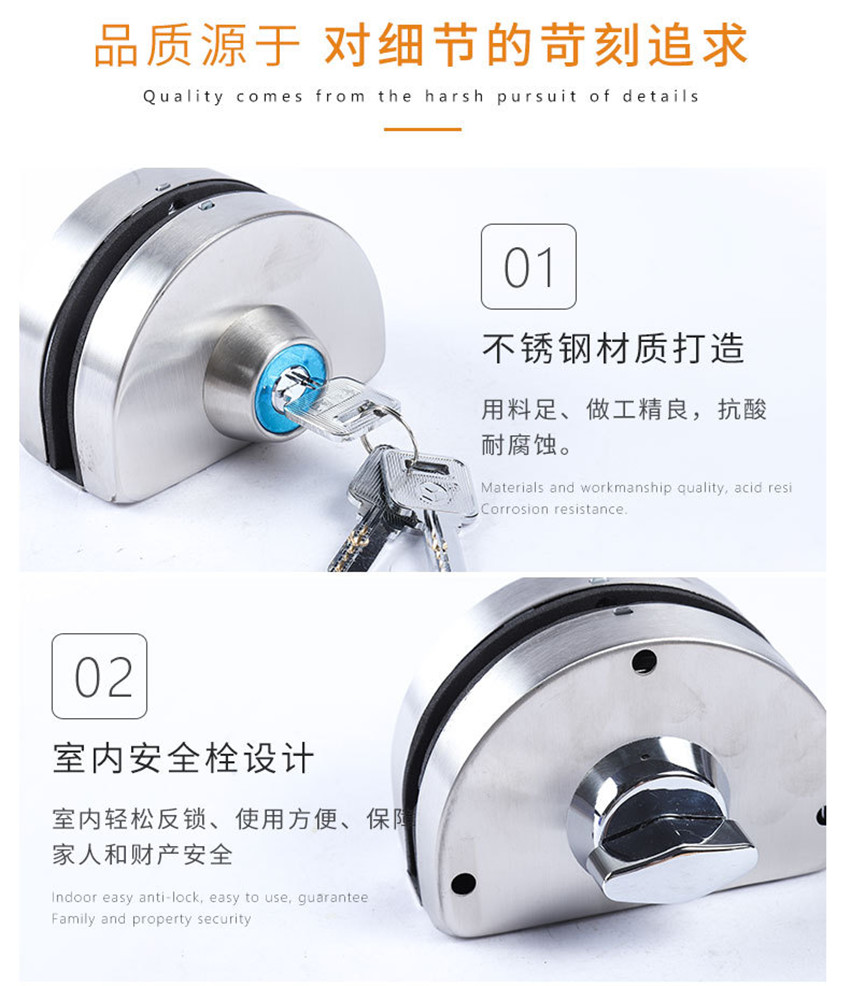 不銹鋼玻璃門鎖 鎖推拉玻璃鎖單雙門半圓型無(wú)框玻璃門鎖