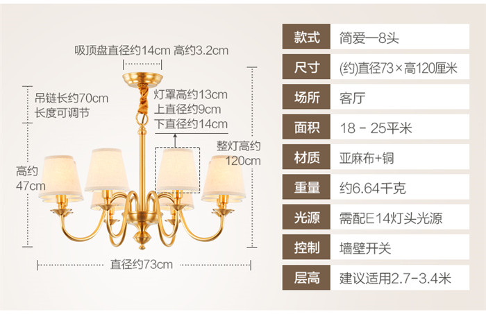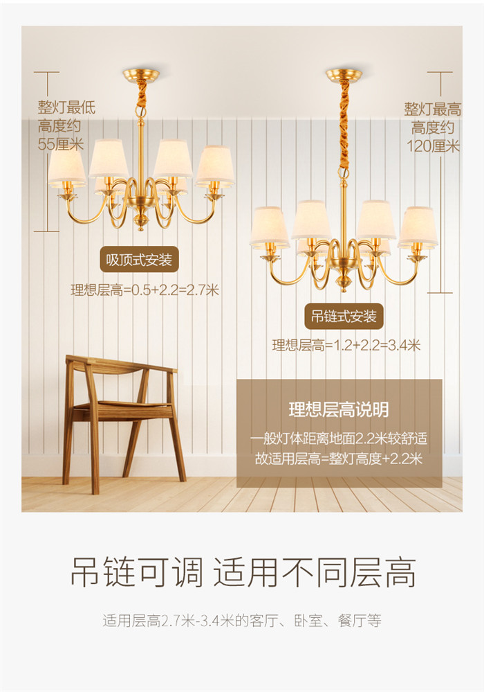 歐普照明美式吊燈客廳燈全銅燈餐廳臥室現(xiàn)代簡約大氣燈具DD